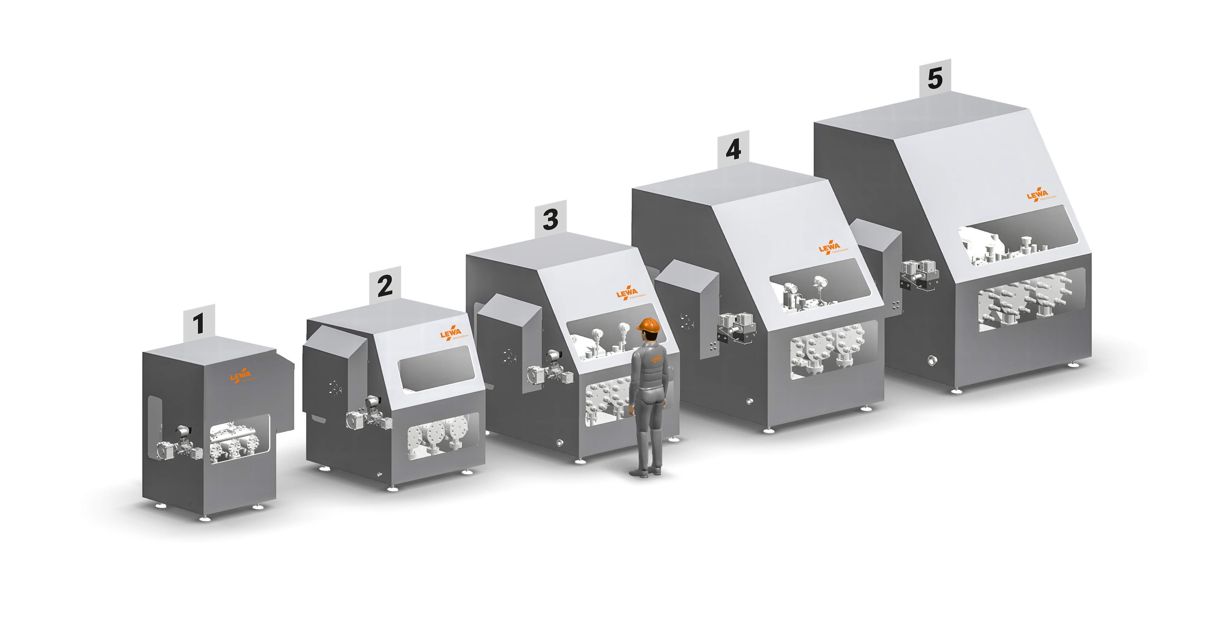 | 1) Lab system | 2) Pilot system | 3) Production plant | 4) Production plant | 5) Production plant |